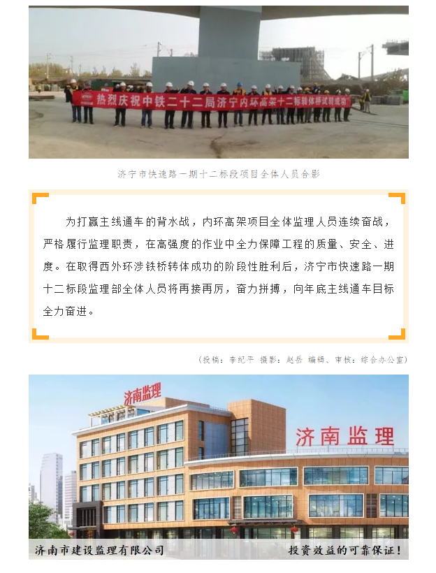 濟寧市內環(huán)高架項目西外環(huán)涉鐵轉體橋成功轉體
