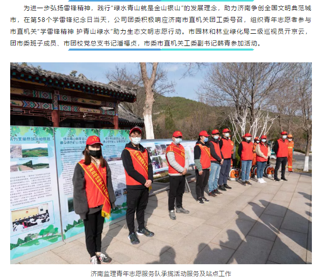 “學(xué)雷鋒精神 護(hù)青山綠水”——濟(jì)南監(jiān)理青年志愿者參加市直機(jī)關(guān)團(tuán)工委助力生態(tài)文明志愿行動(dòng)