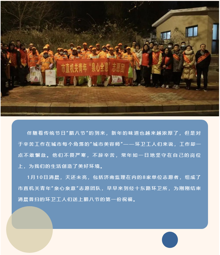 濟(jì)南監(jiān)理青年志愿者參加市直機(jī)關(guān)團(tuán)工委“泉心泉意”志愿團(tuán)暖冬行動(dòng)
