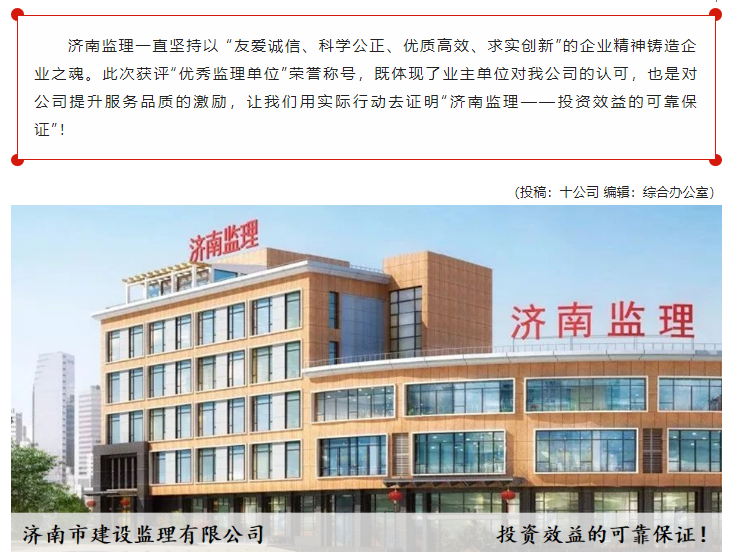 公司獲評(píng)濟(jì)南軌道交通集團(tuán)建設(shè)投資有限公司2021年度“優(yōu)秀監(jiān)理單位”